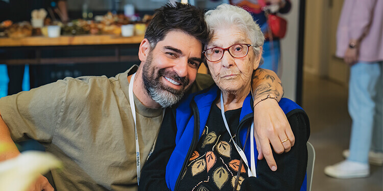קרדיט צילום: ויקטור לוי. מימין לשמאל – ניצולת השואה פנינה פרחי והזמר רותם כהן