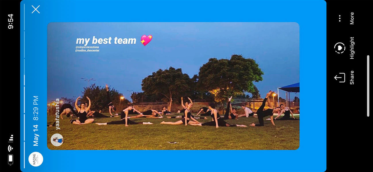בזמן שהיינו בעיצומה של תקופה הזויה זו חיפשנו דרכים מקוריות להמשיך את פעילות הסניפים (ראשון לציון, נס ציונה) ולהקות המחול המקצועיות (ישראל, ניו יורק) במטרה להקל על התלמידים והרקדנים, לדאוג לכושר והתפתחות ואף לשמור על החיוך וליהנות.