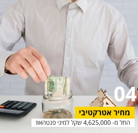 בארבעת מגדלי היוקרה של פרויקט יוניק טופ המדובר, נותרו דירות מיני פנטהאוזים אחרונות. הדירות ממוקמות בקומות הגבוהות, ברמת גמור גבוהה ותכנון מדויק ומוקפד, בהן תוכלו ליהנות מאיכות חיים אולטימטיבית.
